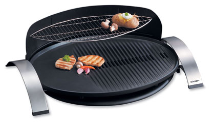 pöytämallinen barbecuegrilli. Sähkövastukset on integroitu paistotasoon,